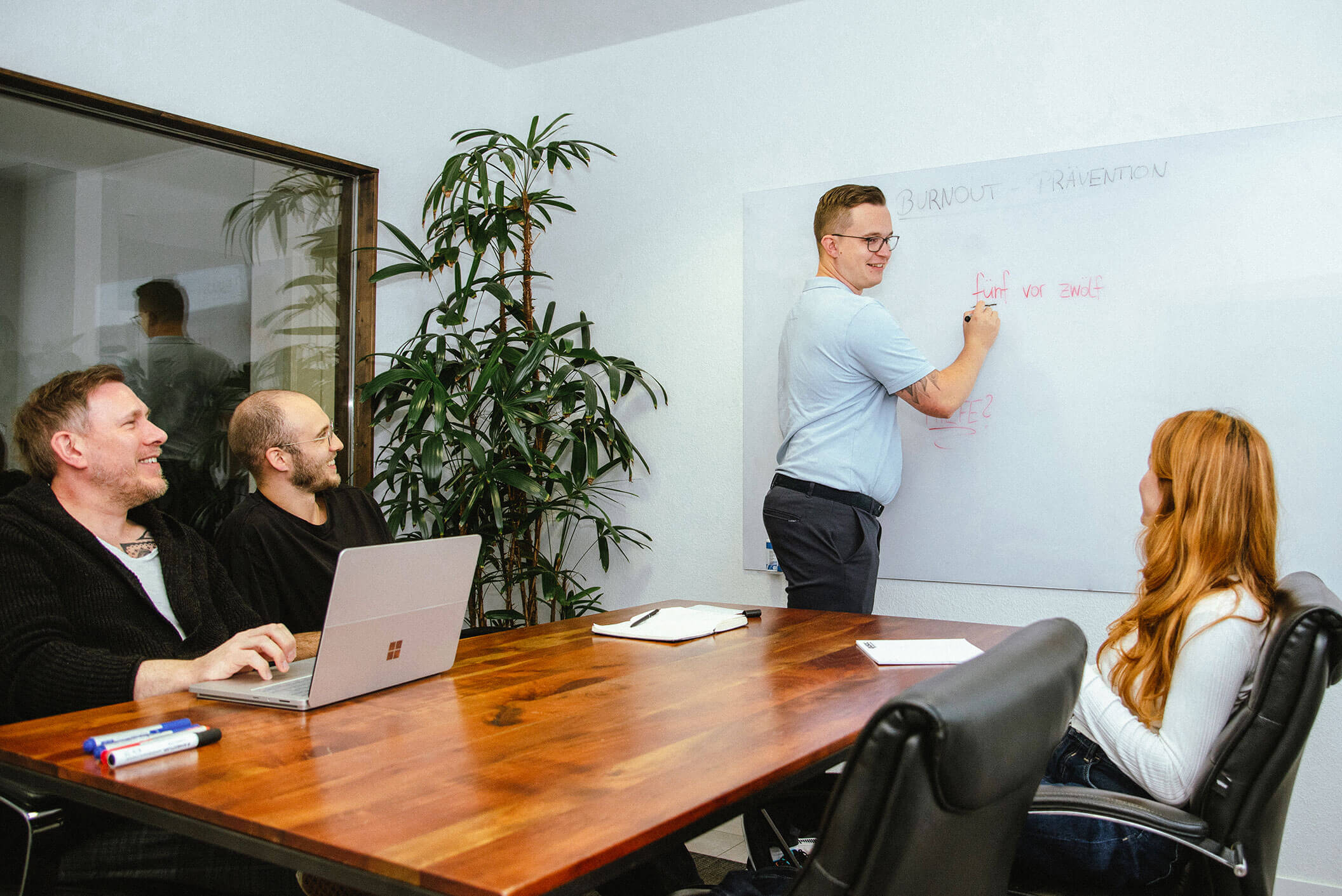 Entwicklungsprogramme für Führungskräfte und Teams: Kommunikation, Resilienz und Leadership mit Gesundheitsfokus.